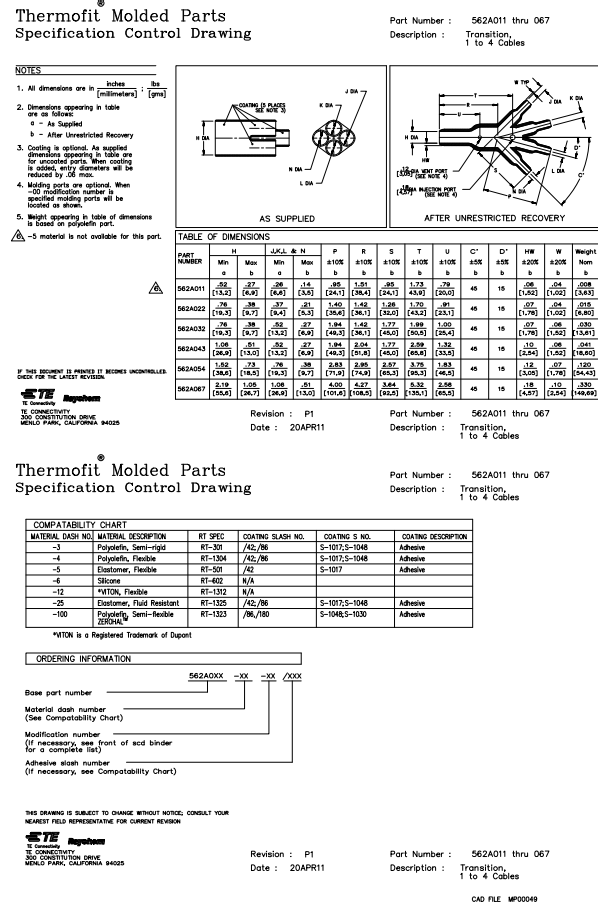562A011-25-0熱縮管常廣泛用于后面無線電源接連器封閉、分線點、和無線電源接連器到電纜線等使用,在攻沙、中國航空和新再生能源范疇TE/raychem瑞侃熱縮管總是仍處于領導人地方