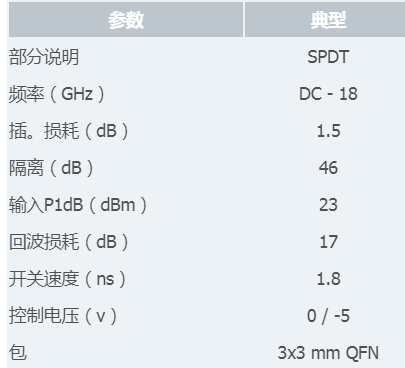 CMD196C3是DC-18 GHz(L、S、C、X、Ku波段)SPDT非反射(she)開關MMIC,使用無鉛RoHS兼容3x3 SMT封(feng)裝(zhuang),封(feng)裝(zhuang)在3x3毫米無鉛表(biao)面(mian)安裝(zhuang)(SMT)封(feng)裝(zhuang)中,應用范圍涉及航空(kong)航天、通信、微(wei)波、雷(lei)達、無人(ren)機、導彈、戰艦(jian)、航海等重(zhong)型設備和(he)高端高可靠設備,廣泛運用在軍工領域