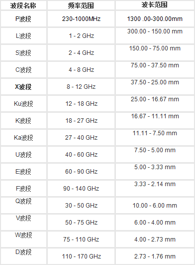 隨著IEEE 521-2002條件,X光波是說 平率在8-12 GHz的無線網電波波長,在電滋波譜中應屬于微波射頻。而在部分情況下中,X光波的率范疇則為7-11.2 GHz。波長范圍:37.50 - 25.00 mm。